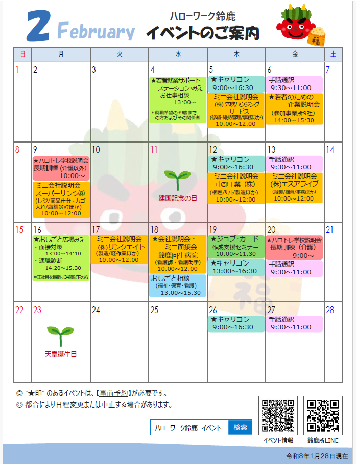 ハローワーク鈴鹿 イベントのご案内(2月)【ハローワーク鈴鹿】