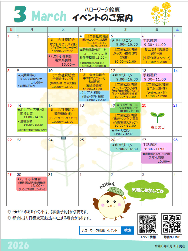 ※都合により日程変更または中止することがあります。
