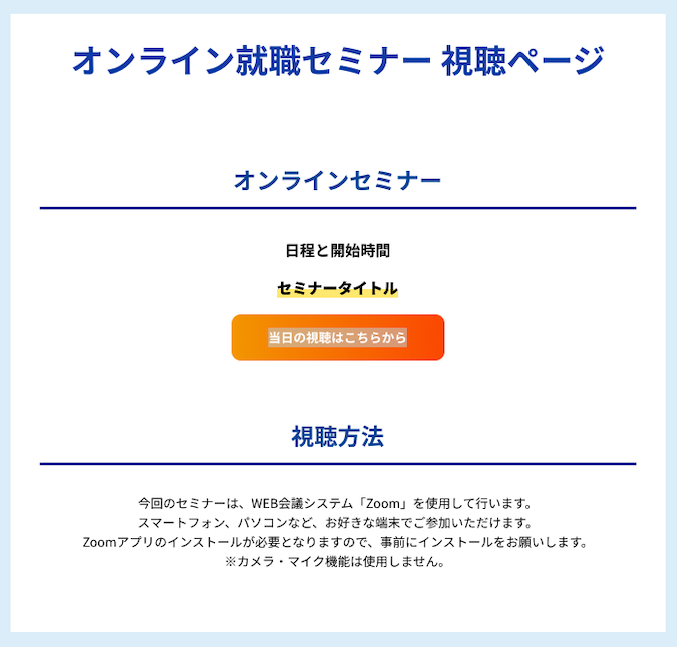 予約すると「オンライン就職セミナー 視聴ページ」のURLが送られてきます。